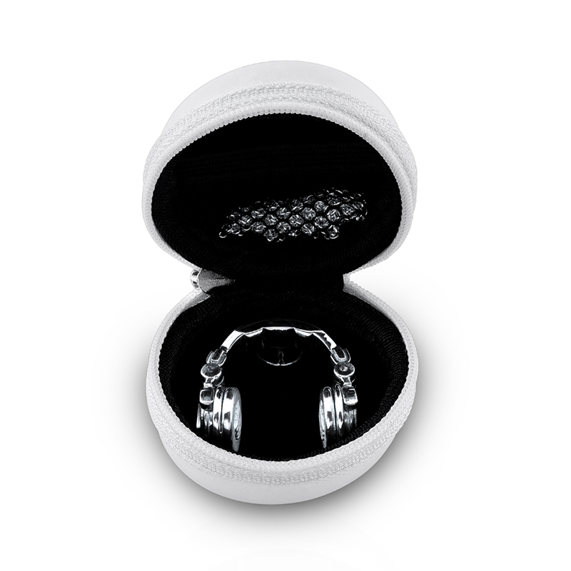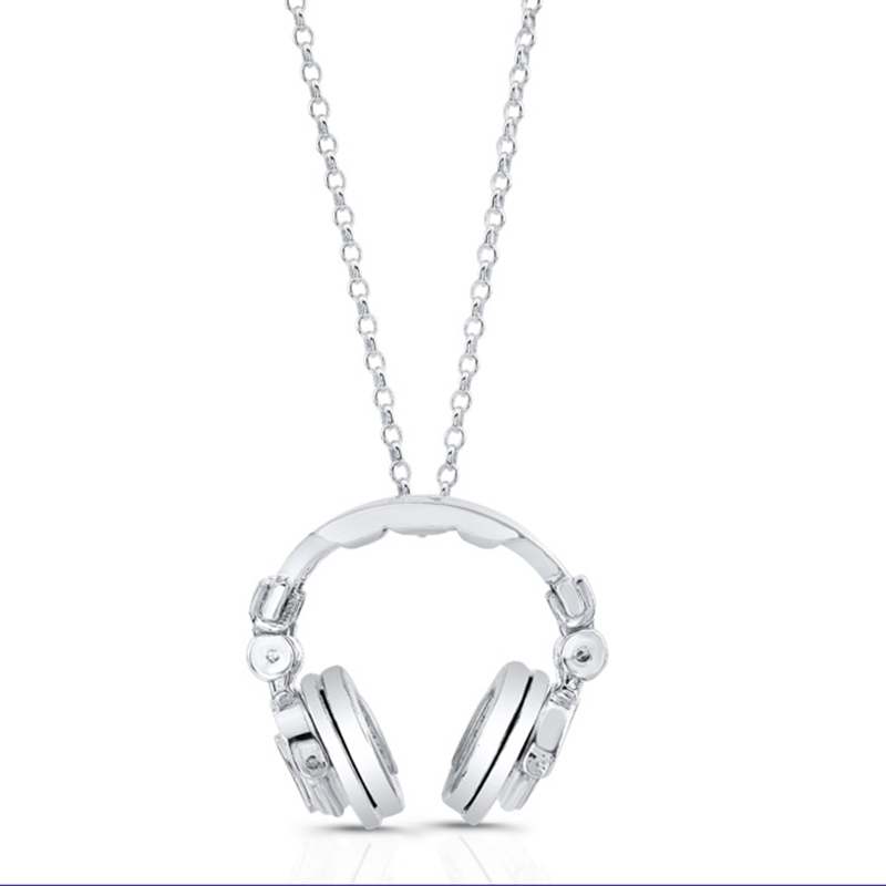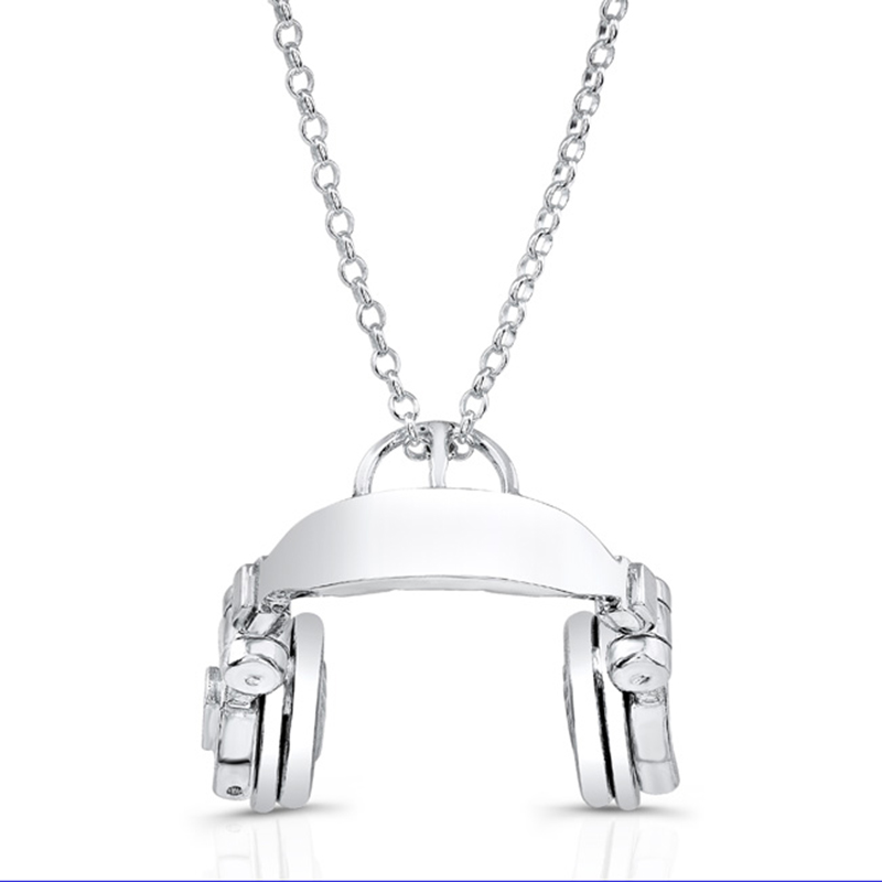 One of kind DJ headphone pendant comes with a 22 inch link chain and can be customized by laser engraving logos, names, setting precious and semi-precious stones.  The creativity never stops! Perfect for the DJ, the Fan and the everyday music enthusiast!